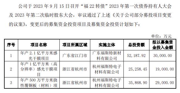 公告顯示,截至2023年12月末,“年產(chǎn)2.5億平方米高效電池封裝膠膜項目”已完成部分廠(chǎng)房的建設工作,累計已實(shí)際投入資金5152.61萬(wàn)元;“年產(chǎn)500萬(wàn)平方米撓性覆銅板(材料)項目”已完成部分廠(chǎng)房建設和部分設備安裝,累計已實(shí)際投入資金1.79億元。