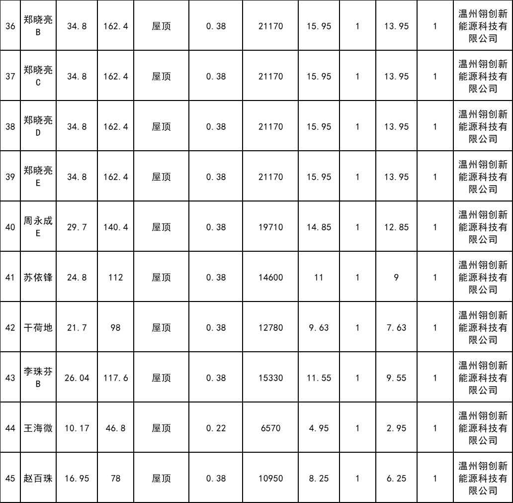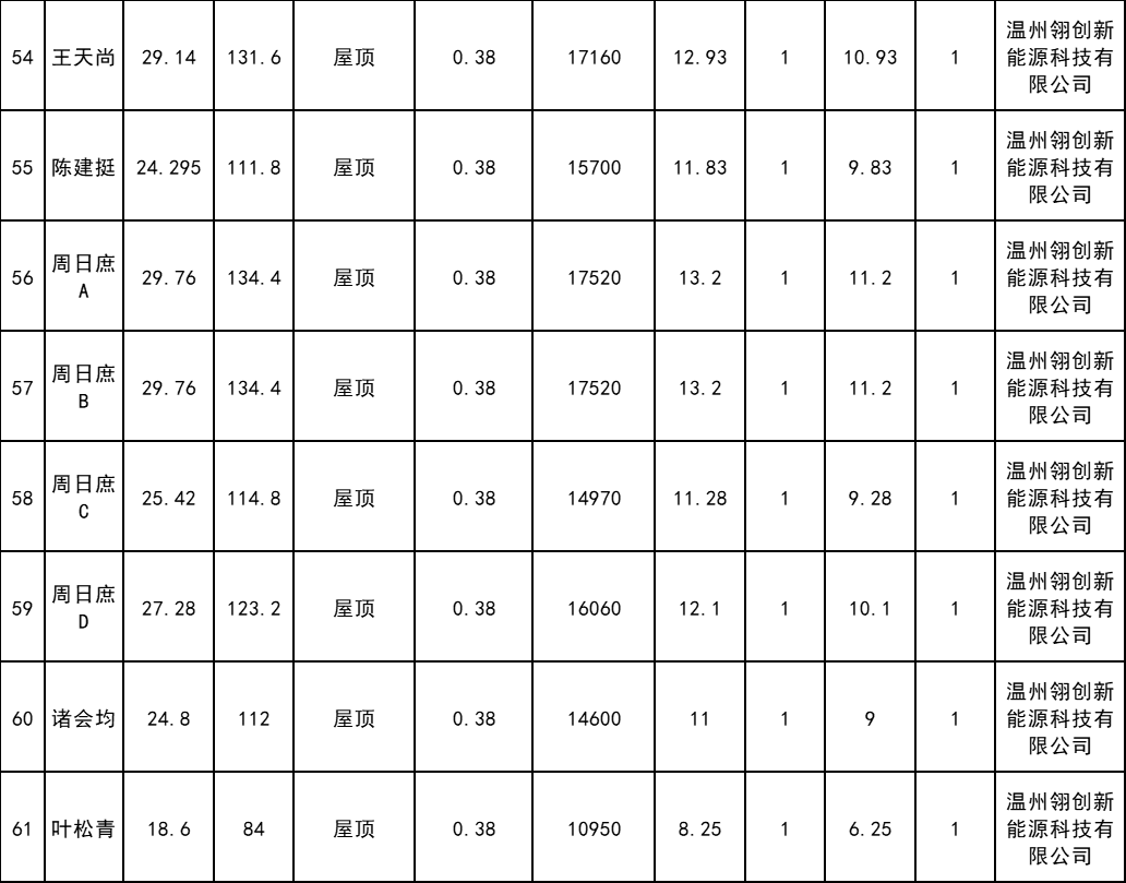 附件:樂(lè )清市2024年第六批居民家庭屋頂分布式光伏發(fā)電項目表