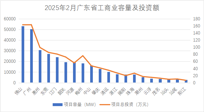 2025年2月,廣東省共新增1380個(gè)工商業(yè)項目,總投資額35.59億元。項目主要分布在東莞、佛山、惠州、江門(mén)、中山、廣州這6個(gè)地市,備案數量均超過(guò)100項。