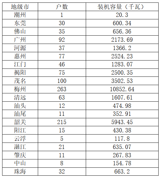 廣東省新增戶(hù)用裝機1149戶(hù),總規模為36.13MW,其中梅州、韶關(guān)、茂名位列前三。