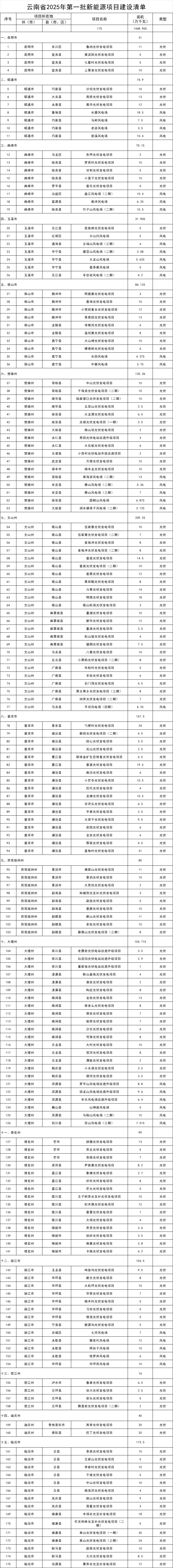 納入云南省2025年第一批新能源項目開(kāi)發(fā)建設方案實(shí)施的項目共175個(gè),裝機1448.905萬(wàn)千瓦,其中光伏項目143個(gè),裝機1203.4萬(wàn)千瓦;風(fēng)電項目32個(gè),裝機245.505萬(wàn)千瓦(詳見(jiàn)附件)。