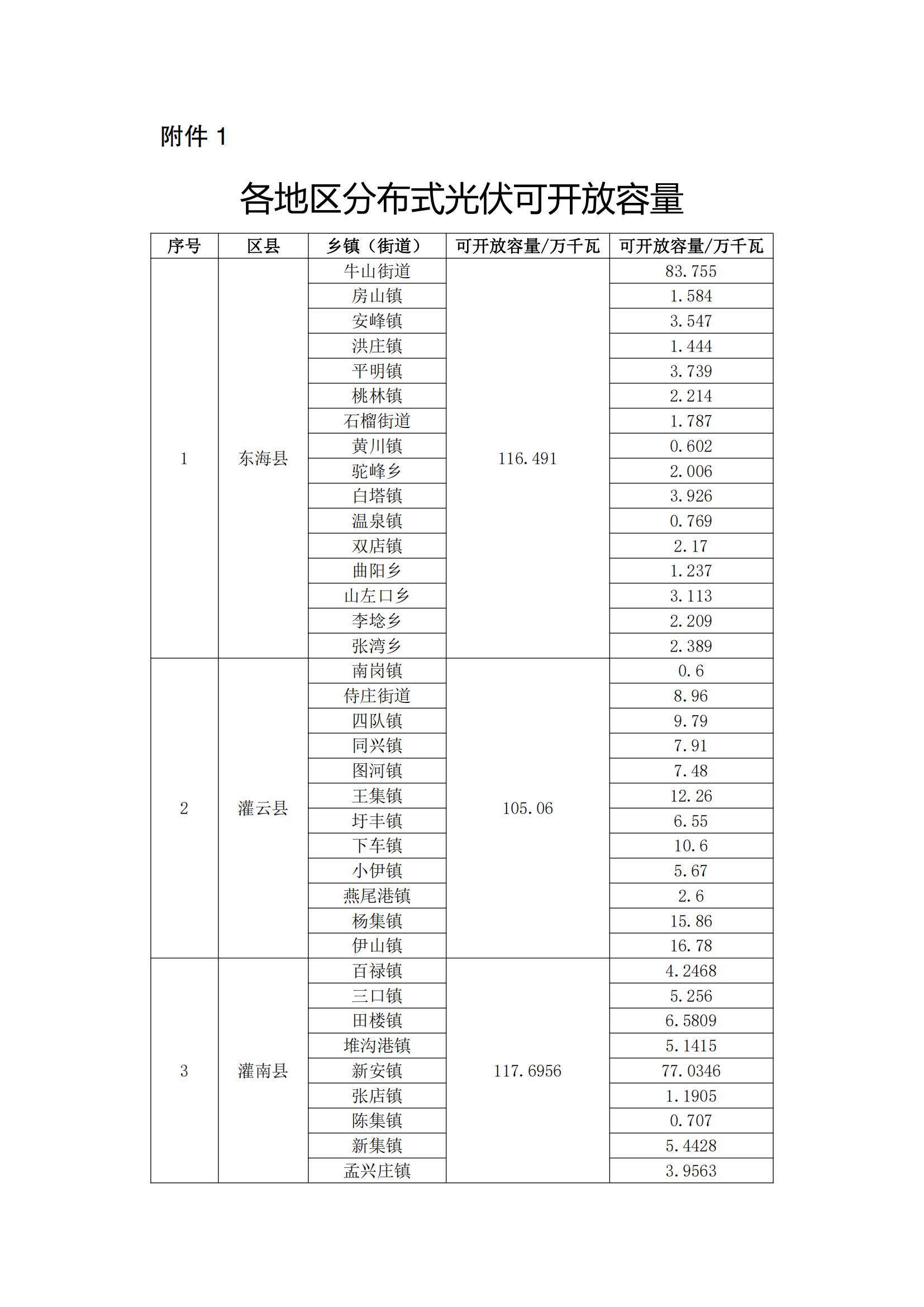 3月3日,江蘇省連云港市發(fā)展和改革委員會(huì )公布連云港市分布式光伏接入電網(wǎng)可開(kāi)放容量。