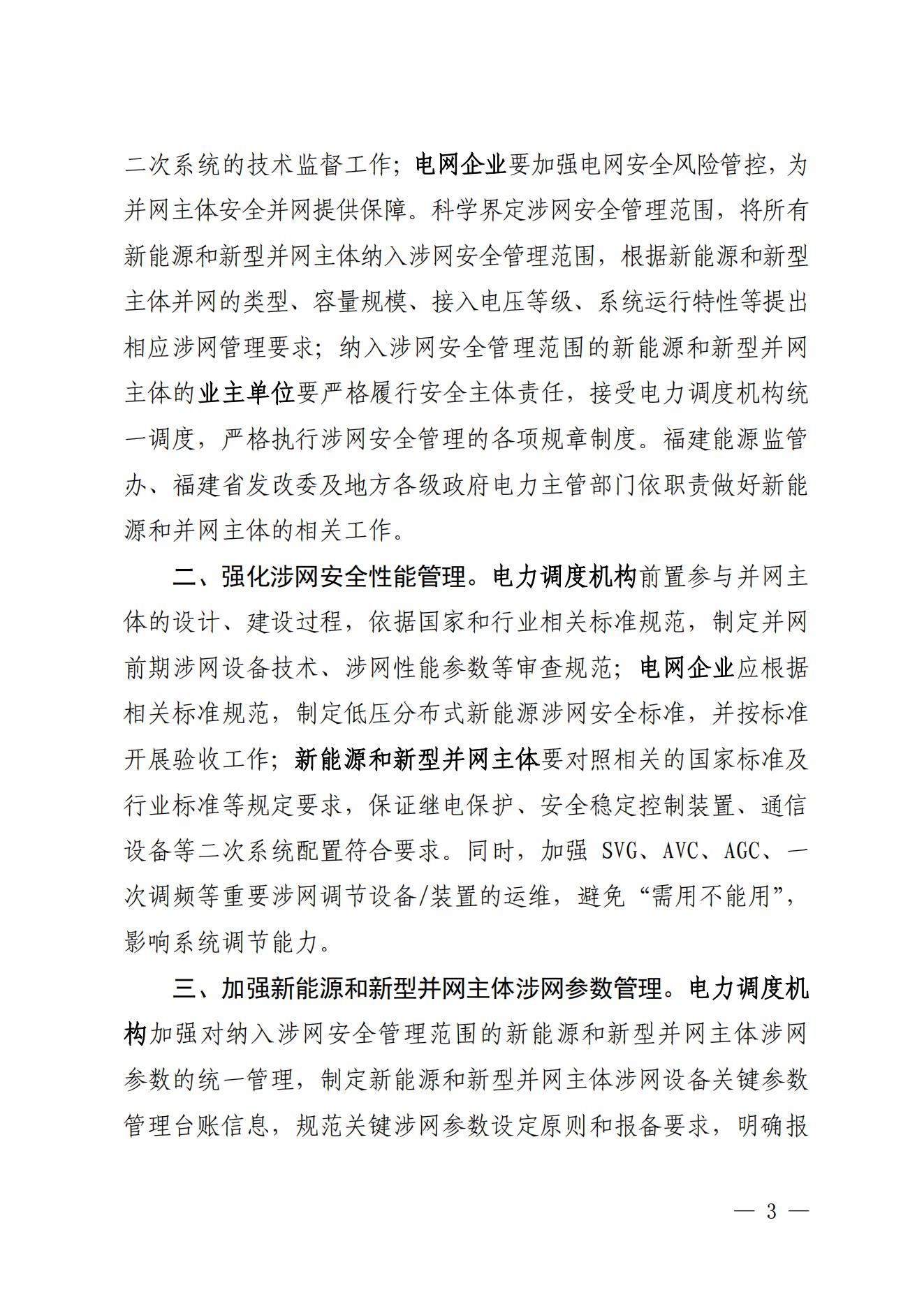 2025年3月13日,國家能源局福建監管辦公室 福建省發(fā)展和改革委員會(huì )關(guān)于公開(kāi)征求《關(guān)于進(jìn)一步加強新能源和新型并網(wǎng)主體涉網(wǎng)安全管理的通知(征求意見(jiàn)稿)》意見(jiàn)的通知。
