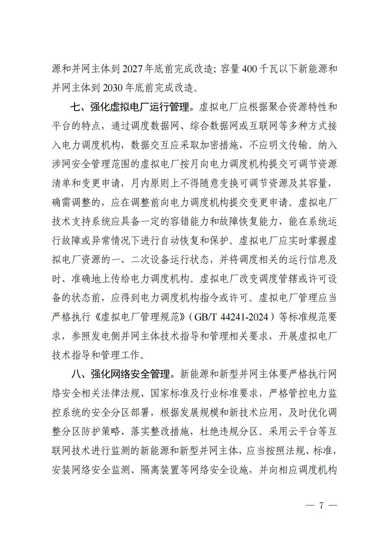 三、加強新能源和新型并網(wǎng)主體涉網(wǎng)參數管理。電力調度機構加強對納入涉網(wǎng)安全管理范圍的新能源和新型并網(wǎng)主體涉網(wǎng)參數的統一管理,制定新能源和新型并網(wǎng)主體涉網(wǎng)設備關(guān)鍵參數管理臺賬信息,規范關(guān)鍵涉網(wǎng)參數設定原則和報備要求,明確報備參數范圍、流程等?;谛履茉春托滦筒⒕W(wǎng)主體實(shí)測建模,加強建模及參數實(shí)測管理,完善新能源和新型并網(wǎng)主體涉網(wǎng)參數全周期、精細化管理機制,確保電力系統穩定計算分析結論科學(xué)準確;新能源和新型并網(wǎng)主體涉網(wǎng)安全設備參數、定值等未經(jīng)許可不得擅自調整,控制邏輯或參數發(fā)生變化后要復核測試。新能源和新型并網(wǎng)主體要根據電力系統穩定計算分析要求,進(jìn)行建模及參數實(shí)測,并定期開(kāi)展涉網(wǎng)參數復測,復測周期不超過(guò)5年,檢測應由具備CNAS/CMA資質(zhì)或同等資質(zhì)能力的第三方機構開(kāi)展,試驗方案、試驗結果和試驗報告應經(jīng)電力調度機構審核確認。